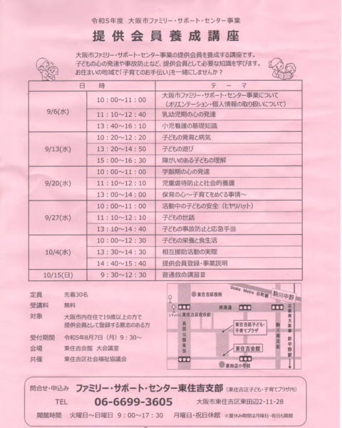 令和5年度大阪市ファミリ-・サポ-ト・センタ-事業「提供会員養成講座」のご案内です。